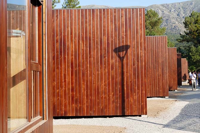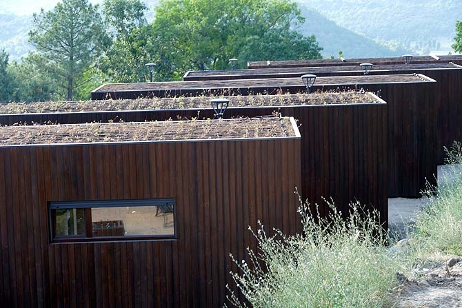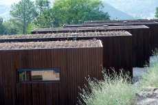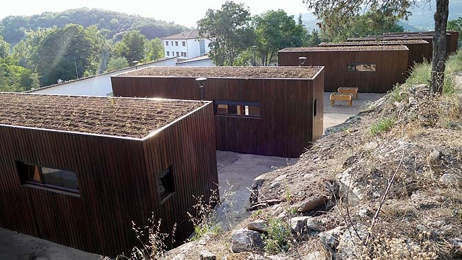 Ha destacado que la madera de los edificios se une al entorno, a lo que se suma que el tejado de cada bungaló tiene 400 plantas que, alimentadas por goteo, cubrirán cada bungaló de un tapiz verde.