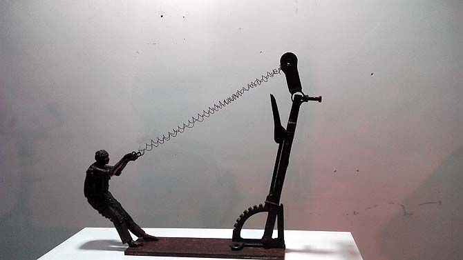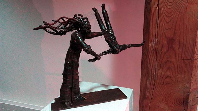 Una muestra de sus obras, que él denomina “reconversiones” de esa chatarra, pueden verse en el Espacio Cultural de El Barco de Ávila.