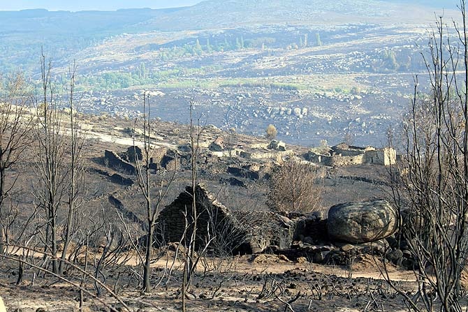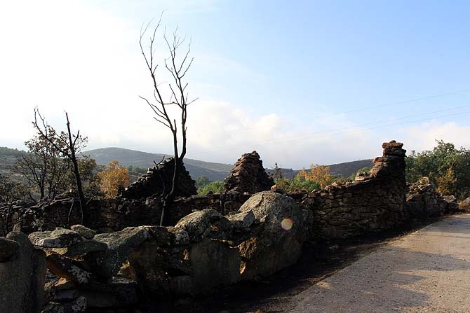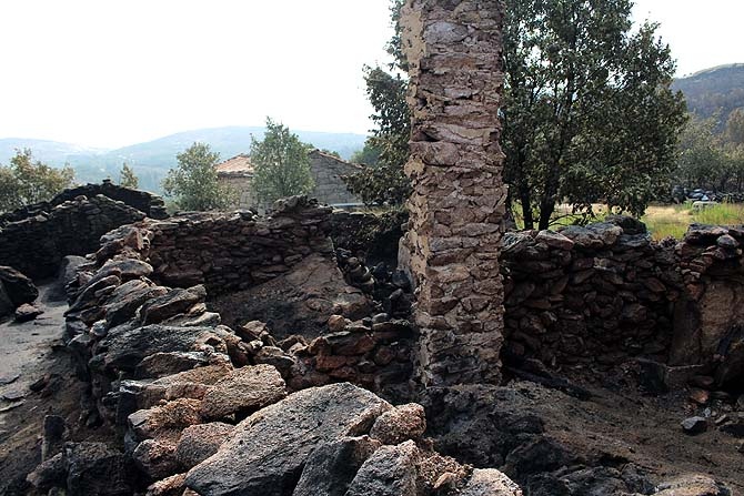 A medida que se asciende por el camino de Navalvao y Navagalindo, del paisaje de los corrales “solo queda su silueta, las paredes están completamente ennegrecidas, la cubierta de madera y piornos es inexistente porque se ha evaporado víctima de las llamas".
