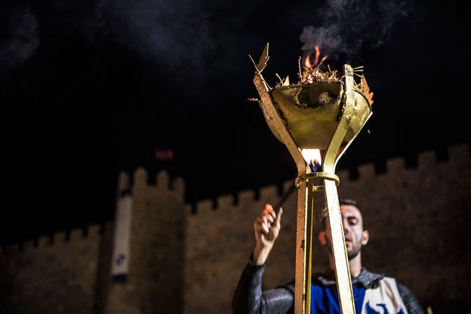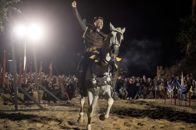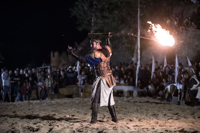 La primera cita fue en la noche del viernes, cuando los integrantes de la compañía alicantina Legend Especialistas, con 150 piezas de vestuario y 50 tipos de armas de época pelearon en el atrio de San Isidro entre la oscuridad y las llamas. Los combates se repiten el sábado (13 y 19 horas).
