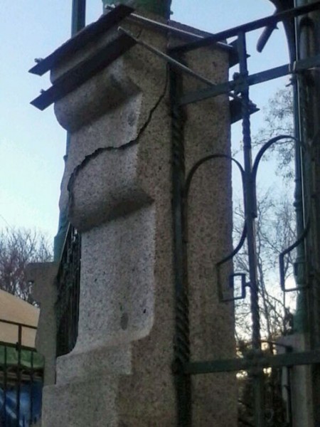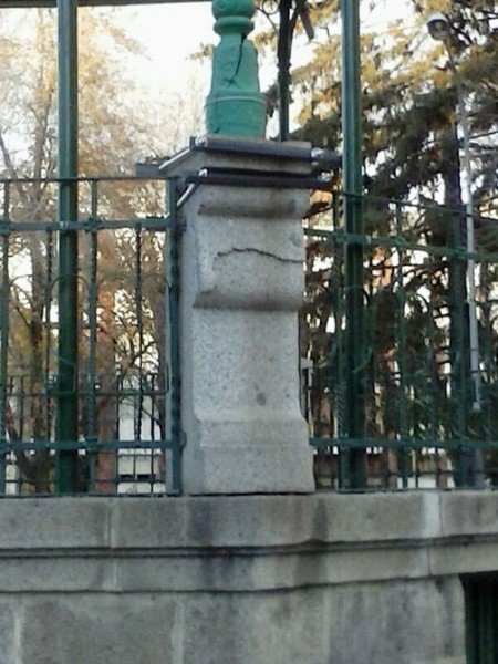 La actuación decidida de forma urgente ha sido la de acordonar la zona y cerrar el acceso para que ningún viandante puede acceder al templete y colocar un arriostramiento de la piedra y el pilar afectados para evitar su desprendimiento.