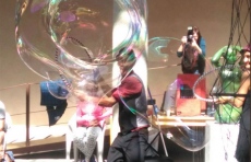 La plaza del Mercado Chico se ha llenado para observar durante una hora la evolución de una pareja con la historia de un dúo de artistas circenses con humor y emoción, que se llevaron una ovación por parte del público.