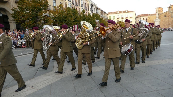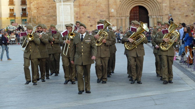 Ha sido parte del segundo encuentro de unidades militares, que ha reunido a cinco formaciones, que han desfilado por varias calles tocando marchas para confluir en el Mercado Grande. Después han ofrecido un concierto al que se ha unido la voz de la soprano Herminia Ruiz Amat.