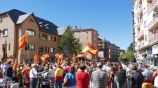 “Puigdemont a prisión” ha sido una de las frases coreadas en una protesta celebrada el sábado por la tarde con numerosas banderas españolas, pero sobre todo una de gran tamaño portada por varios jóvenes, que han sido el centro de la concentración.