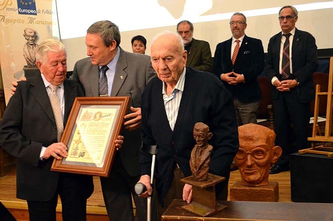 El dulzainero Aureliano Muñoz ‘Polilo’, de 89 años y natural de Velayos, y al tamborilero Modesto Jiménez, de 85 años y natural de Vega de Santa María, fueron los protagonistas en Segovia del XXII Premio Europeo de Folklore 2017 Agapito Marazuela.