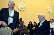 Seguidamente, subieron al escenario Modesto Jiménez y José María Palacios (nieto de Aureliano), quienes deleitaron al público que llenaba la sala con la extraordinaria pieza del cancionero de Agapito Marazuela ‘La Pinariega’, lo que hicieron como un adelanto del extraordinario concierto de ambos para el día siguiente en la Fundación Caja Segovia.
