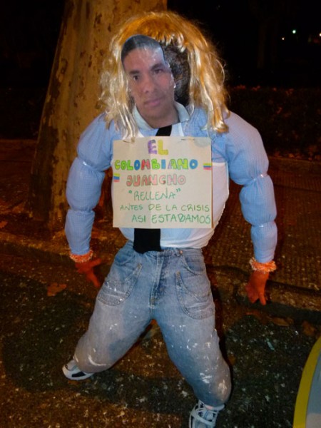Entre la decena de monigotes, el primer premio fue para el que representaba un guerrillero de la FARC con un cartel que decía “Quiero la paz, por eso entrego las armas y poder estar tranquilo con todos”; el segundo para un ‘colino’, nombre con el se conoce a los adolescentes colombianos, que a su vez da nombre a un equipo de fútbol de jóvenes; y el tercero para Pibe Valderrama, uno de los que han sido mejores futbolistas de Colombia y que militó en el Real Valladolid.