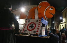 Tras un recorrido por calles de la barriada que ha llegado a la Toledana, el pez de la familia de los clupeidos ha ardido junto a un montón de hielo que se conserva ante la ermita. Debajo de la sardina, un expendedor de ticket de la autopista, Homer diseñando el plan de nevadas y una señal de prohibición del peaje.
