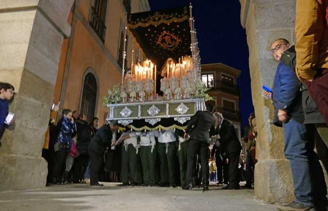 Es el momento más delicado de la Procesión de la Esperanza, que salió de la iglesia de San Juan a las 19 horas con el paso de Jesús de la Salud, que estrenaba la talla de San Juan Evangelista, y con la imagen de la Esperanza.