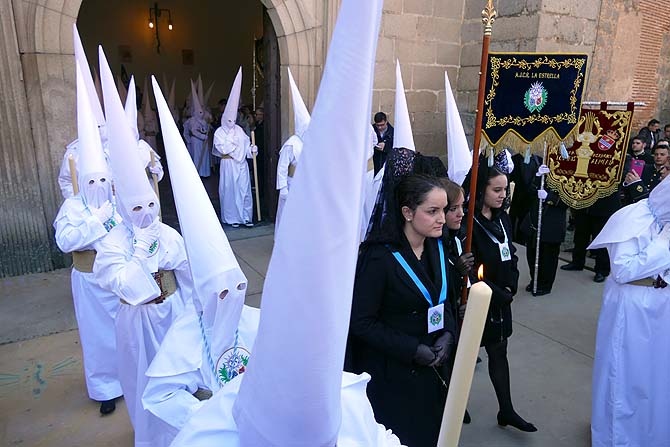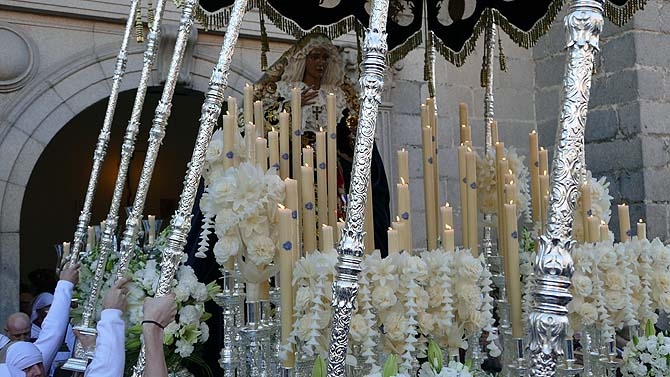 Poco después ha salido la imagen de Nuestra Señora de la Estrella, en este caso con mayor habilidad puesto que hay que situar el palio sobre el trono, después de sacar el paso de rodillas por la puerta de Las Gordillas.