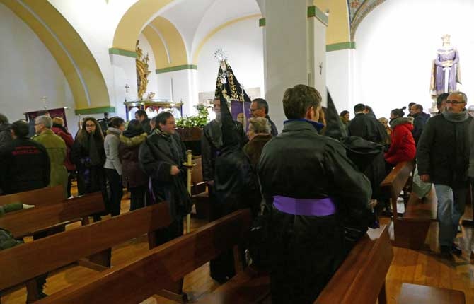 Una parte de la procesión del Viernes Santo sale de la Catedral, mientras que otra lo hace de la iglesia de San Ignacio de Loyola con las autoridades al frente. En este templo ha tenido lugar una oración similar a la que se celebra antes de la procesión habitualmente, que ha oficiado el consiliario del patronato, José María López, y en la que ha intervenido el obispo, Jesús García Burillo, quien ha lamentado que no pudiera celebrarse la procesión por el efecto de la naturaleza y ha emplazado al desfile del Viernes Santo del próximo año.