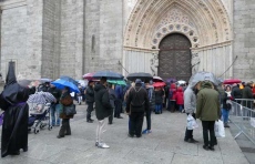 Integrantes del patronato, fuera de la Catedral, y miembros de Protección Civil han anunciado la noticia a las decenas de personas que esperaban en torno a la puerta del templo catedralicio.
