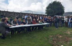 Al término de la misa, el alcalde de Burgohondo, Juan José Carvajal, y la teniente de alcalde de Cultura de Ávila, Sonsoles Sánchez-Reyes, han hecho entrega de una placa conmemorativa a los Padres Salesianos en agradecimiento por los nueve años de colonias en Burgohondo.