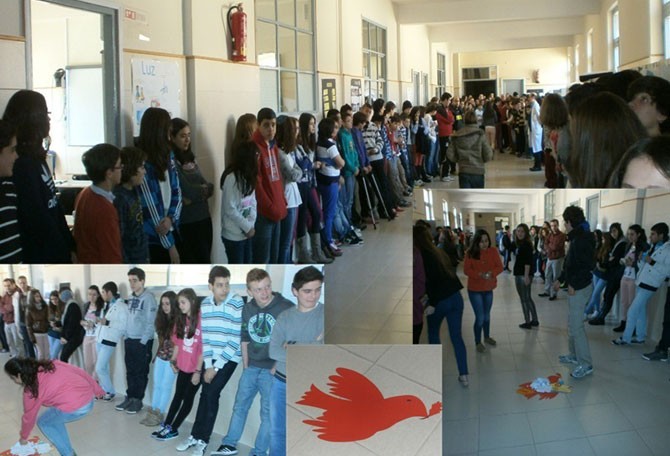 La celebración finalizó con alumnos formando la palabra ‘paz’ en el centro de patio mientras sonaba la canción ‘Color esperanza’, al igual que al comienzo habían entonado ‘Qué canten los niños’, de José Luis Perales.
