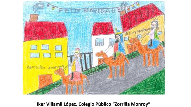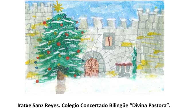 La segunda clasificada ha sido la de Iratxe Sanz Reyes, del Colegio Divina Pastora, donde aparece la fachada principal del castillo; y la tercera es de Iker Villamil López, del CEIP Zorrilla Monroy, con una postal que hace referencia al paso de los Reyes Magos por los centros educativos de Arenas.
