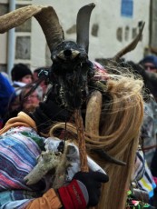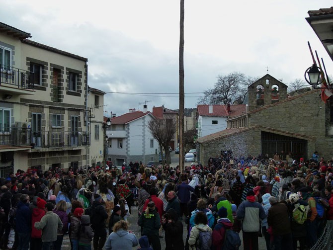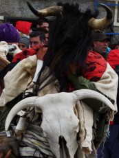 A los quintos viejos les delatan los cencerros, que suenan incansablemente. Los cucurrumachos llegaron a la plaza, ante el mayo, e inundaron de paja a los presentes en la fría tarde del domingo, siempre entre su tétrico aspecto con sus máscaras de madera, sus calaveras de animales, su cornamenta y su pelambrera de crines y colas de caballo.