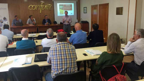 Visita de representantes de Confae a la nueva fábrica de Ornua.El director de Ornua Ingredientes España, Joan Bombardó, les ha explicado que las obras, en las que invierten cerca de 30 millones de euros, avanzan a buen ritmo, con lo que esperan que comience a producir de nuevo a finales del mayo o principios de junio.