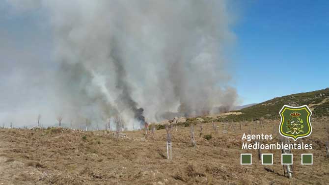 El incendio en el término municipal de Villafranca de la Sierra, que se ha estabilizado después de las 19 horas, ha quemado una zona de matorral y después un pinar de repoblación de 14 años.