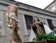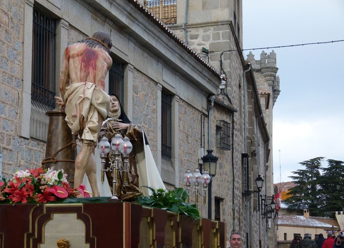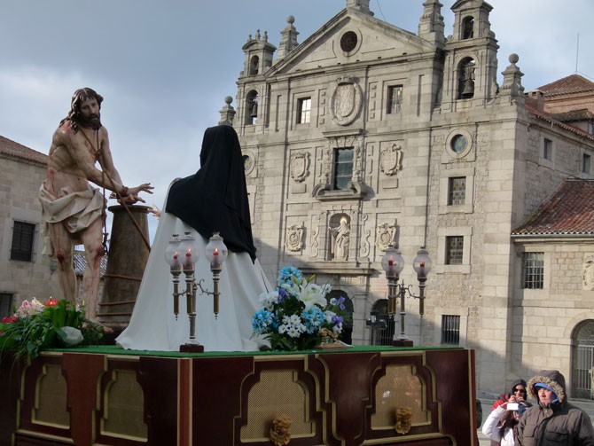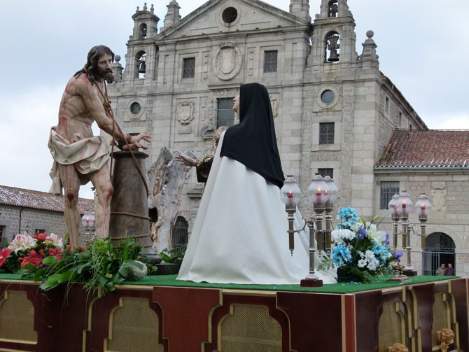En un recorrido que ha tenido cinco momentos meditativos, elaborados con escritos de Santa Teresa, la comitiva ha estado presidida por el grupo escultórico tal como lo concibió Gregorio Fernández en la copia que se exhibe en el Museo de Santa Teresa, ya que los originales se encuentran en el convento.