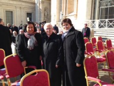 Entre las 50.000 personas que acudieron el penúltimo día del pontificado se encontraban la presidenta del Consejo Directivo de la UCAV, Lydia Jiménez; la rectora, Rosario Sáez; y Josefa Guerrero, miembro del patronato de la Fundación Teresa de Ávila; que acudieron en comitiva para despedirse de su santidad en nombre de la institución universitaria.