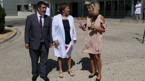 Verónica Casado (derecha) en su visita a Ávila."Diez meses después de iniciado el proceso de la instalación del servicio de radioterapia en Ávila, decir que es arriesgado dar fechas para la puesta en funcionamiento de la radioterapia', es un desprecio para las decenas de miles de ciudadanos abulenses que se volcaron en la petición de este servicio", ha apuntado la AECC.
