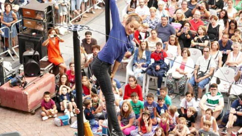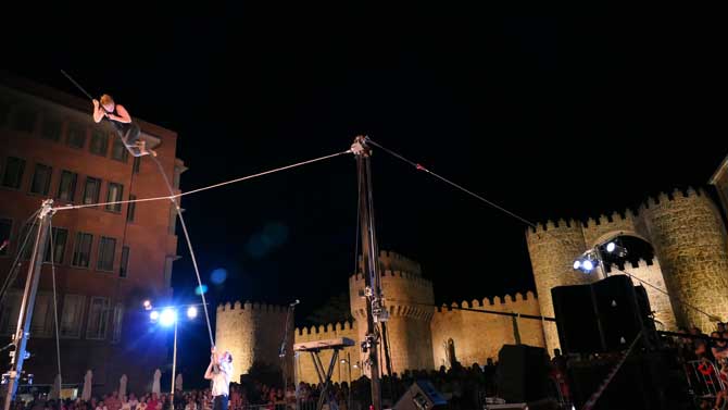 'Resiste' ha mostrado un espectáculo de bellas imágenes y de riesgo sobre un cable, a veces inclinado, y a veces en brusco movimiento, que lo que ha alertado a espectadores de todas las edades que se han cita en uno de los espectáculos más sorprendentes del Festival Internacional de Circo Cir&Co.