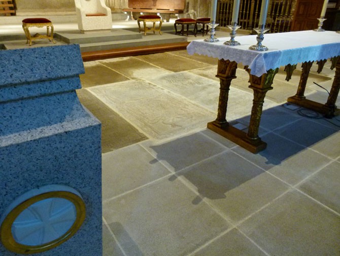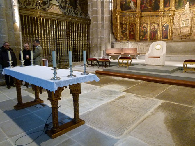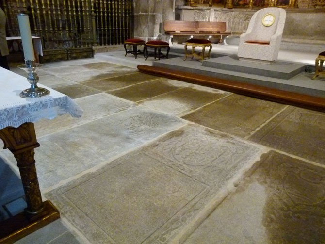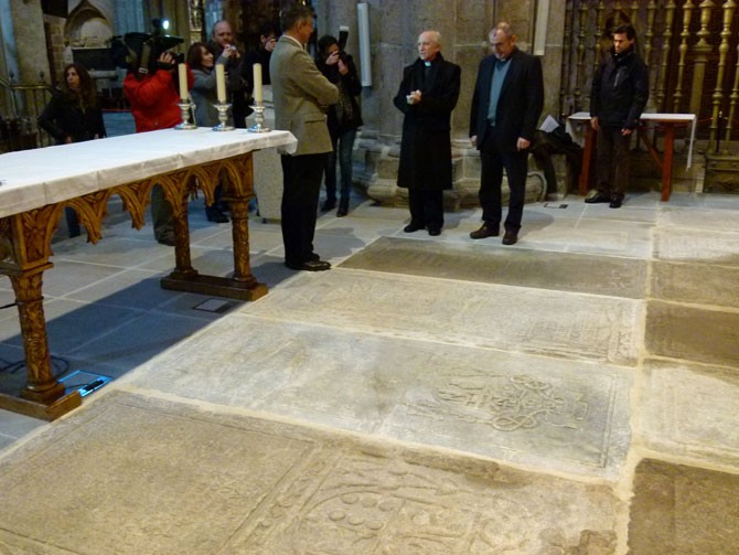 Ahora las 16 lápidas -la más antigua del siglo XIII- se encuentran en el presbiterio -como desde el siglo XVIII- tras un tratamiento para evitar humedades, en unos trabajos que se han desarrollado en los últimos meses y en los que el Cabildo Catedralicio ha gastado 60.000 euros.