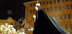 Salió la nueva imagen –anónima del siglo XVII que representa una Dolorosa- de Nuestra Señora de la Sabiduría, mientras que el Santísimo Cristo de los Estudiantes quedó asomado a la puerta.
