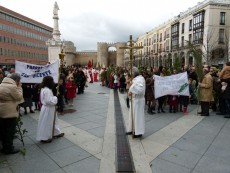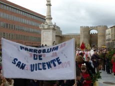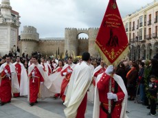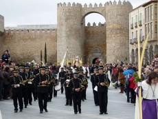 La amenaza de lluvia se hizo realidad cuando el desfile alcanzaba el Colegio Las Nieves, en la calle Duque de Alba. Los integrantes de la agrupación musical Oración del Huerto y la Vera Cruz, de Medina del Campo (Valladolid) colocaron un plástico sobre estandarte y ordenaron ‘doble paso’, como también se tapaba la pequeña imagen de Nuestra Señora de los Infantes.