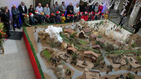 Escolanía del Colegio Pablo VI.Bajo el título de 'Bienvenida a la Navidad', la actuación contó con la participación de la pre-escolanía, escolanía, grupo vocal de alumnos del colegio y el coro de profesores del Colegio Pablo VI, lo que suman 30 voces de todas las edades y registros, bajo la dirección de María del Monte Pindado. Interpretaron un amplio y variado recorrido por los villancicos de siempre, unidos a otros modernos y menos conocidos de diferentes países y culturas.