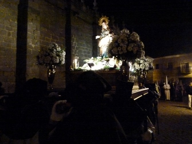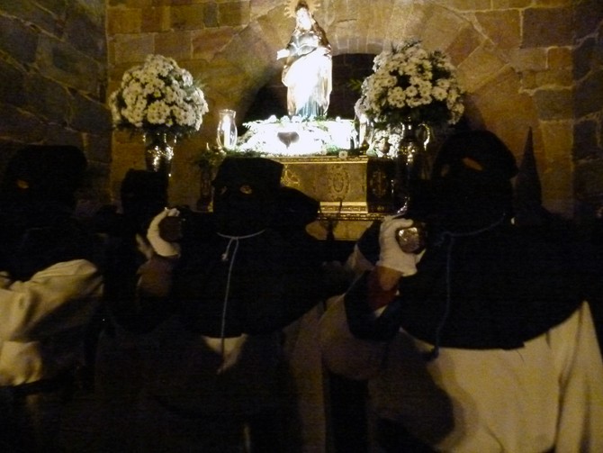 Con la anónima imagen del siglo XII de Santa María de la Magdalena, el desfile partió a medianoche de la iglesia de La Magdalena hacia la ermita del Humilladero, donde los penitentes hicieron estación ante el Santísimo Cristo de los Ajusticiados, momento de encuentro entre ambas imágenes. Fue entonces cuando la coral Amicus Meus entonó un miserere.