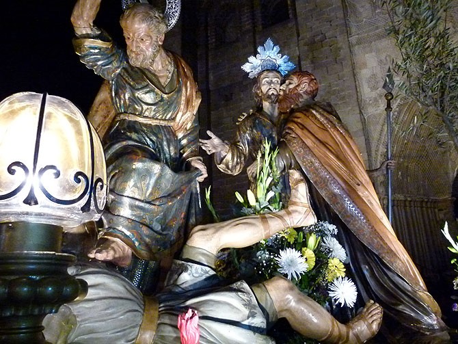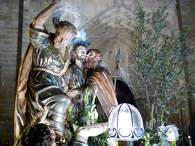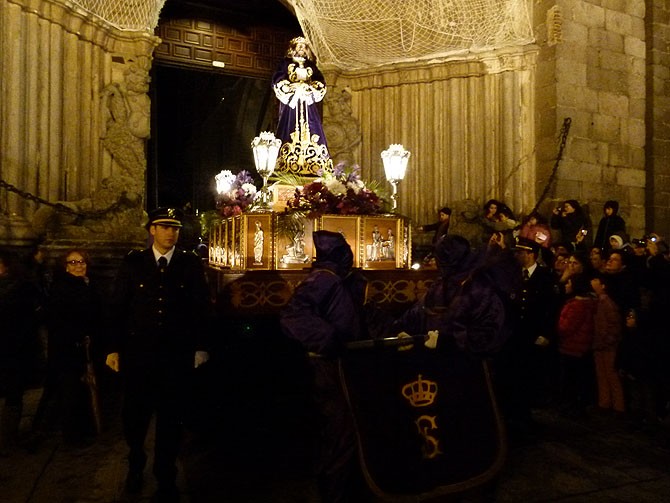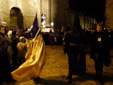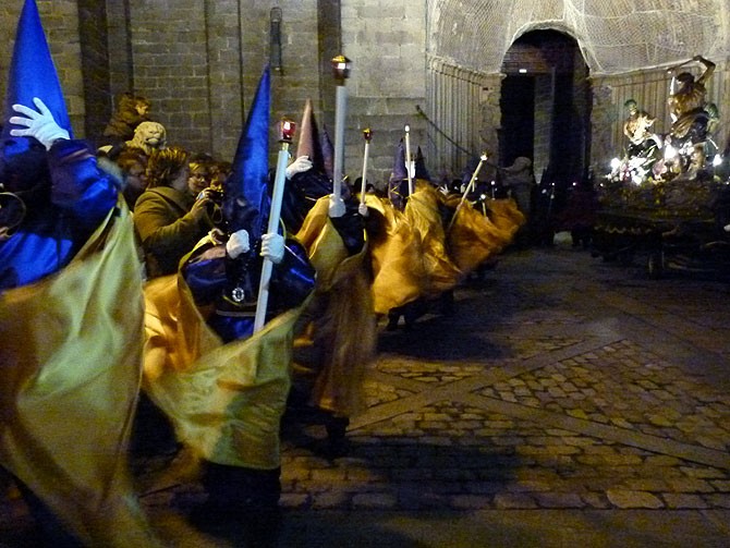 Los penitentes pensaban que cuando el viento cesase, la lluvia aparecía, pero no fue así, llegando a la Catedral la comitiva dos horas después, en la procesión que cuenta, como es tradición, con la presencia del obispo, Jesús García Burillo; la mayoría de los miembros de la corporación municipal, con el alcalde, Miguel Ángel García, a la cabeza; además del subdelegado del Gobierno, José Luis Rivas; y el delegado de la Junta de Castilla y León, Francisco José Sánchez; y otros representantes de Policía, Guardia Civil y Ejército.