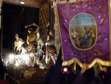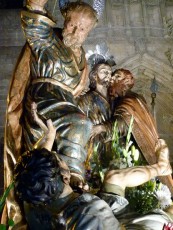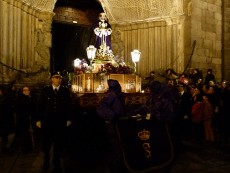 Junto a ellos el Santo Sepulcro, un paso con una urna de cristal con el cuerpo de Cristo que data del siglo XVII, acompañado de una niña que representa al Ángel Custodio, y la Virgen Dolorosa, de luto y con lágrimas que se desprenden de sus ojos.