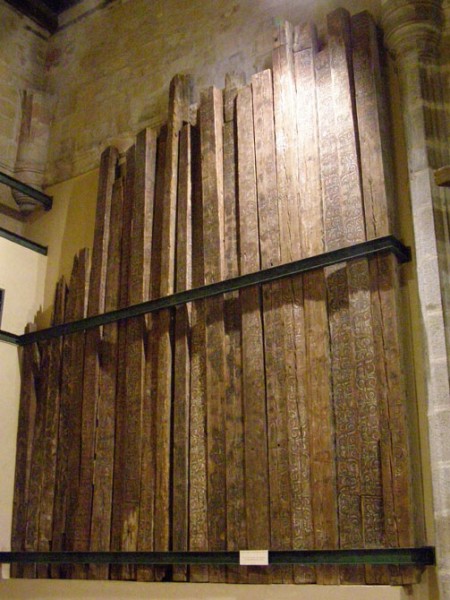 En el almacén visitable de Santo Tomé se han instalado las vigas, y en el rellano de la escalera de la Casa de los Deanes pueden verse algunas tablas, así como una selección de los fragmentos arqueológicos recuperados en la excavación, acompañados del croquis de los perfiles dibujado in situ.