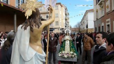 Tras la misa, celebrada a las 11 horas, la procesión partió hacia el centro de la ciudad, para regresar a la ermita del Resucitado, en El Pradillo, sobre las 14 horas, mostrando el contraste del recogimiento penitencial de los últimos frente a los cohetes y la dulzaina.
