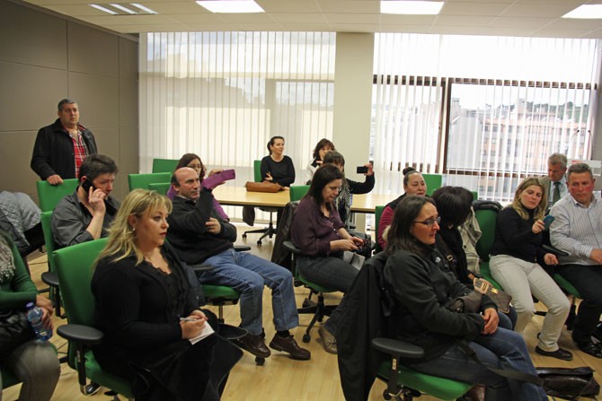 Mientras el presidente de la Junta daba marcha atrás a la decisión mantenida hasta ahora, padres de alumnos de localidades afectadas asistían como público a la sesión de las Cortes y otros protestaban a las puertas del Parlamento regional.