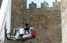 Observar el monumento es afición para cientos de turistas a diario, pero para hacerlo tan de cerca hay subir al adarve, pero en este caso quien se encontraba sobre la escalera del camión de Bomberos -en la mañana del jueves- era la arqueóloga municipal, Rosa Ruiz, en una inspección rutinaria.