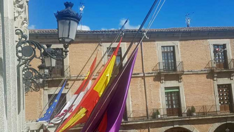 Bandera municipal a media asta en el Ayuntamiento de Ávila.El decreto establece que por este motivo la bandera municipal ondeará a media asta en los edificios públicos, "como expresión del profundo sentimiento de dolor, así como en reconocimiento y recuerdo a los difuntos y muestra de condolencia y apoyo a sus allegados".