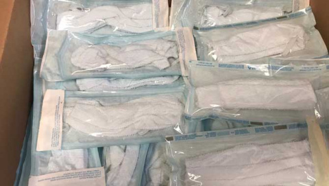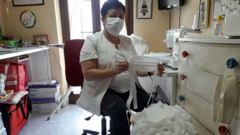 Entrega de material a la residencia de mayores de Tornadizos.Se han donado batas elaboradas por el comercio abulense con material donado por comerciantes, asociaciones y particulares, así como pantallas cedidas realizadas por máquinas de impresión en 3D, guantes y mascarillas.