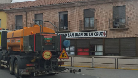 Camión de Medio Ambiente desinfectando calles.Estos medios empezaron a llevar a cabo estas labores el 6 de abril, semanas después de que lo hicieran los del Ayuntamiento de la capital, de la Diputación y de la Unidad Militar de Emergencias (UME).