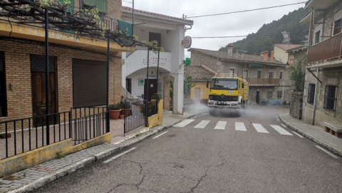 La desinfección de las calles corre a cargo de voluntarios, agricultores y ganaderos, y por parte de la Mancomunidad Bajo Tiétar y Junta de Castilla y León.