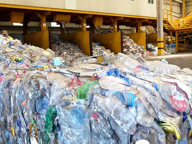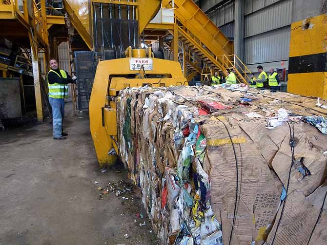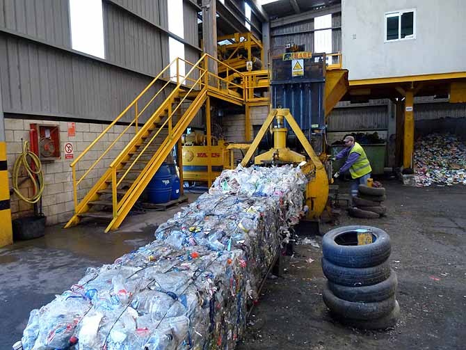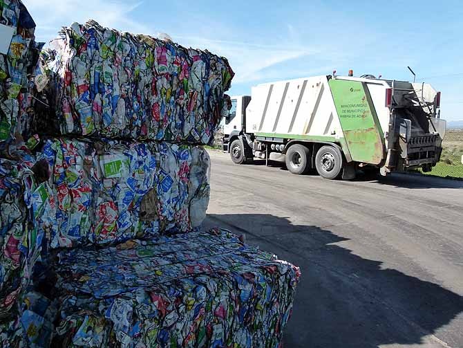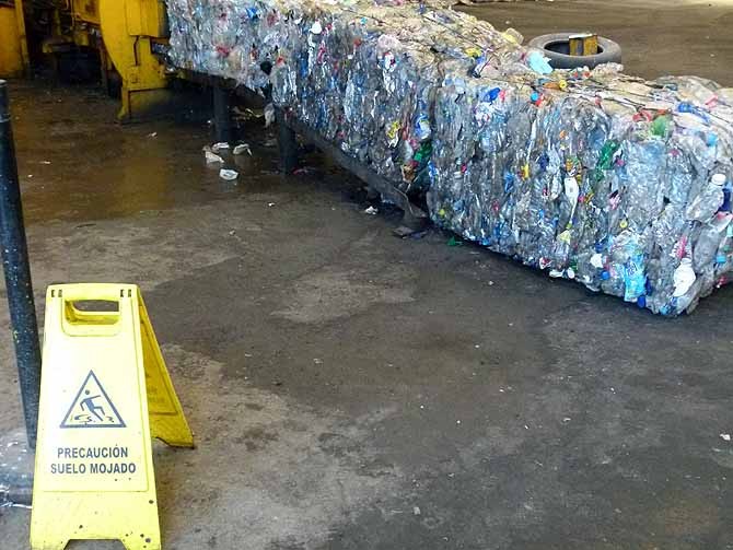 En el recorrido llama la atención observar los grandes fardos hechos de botes de lejía, suavizante y detergente, los de cartón, los de bolsas de plástico, o los de botes de cerveza y refrescos, de diez kilos de peso en un solo unos centímetros de grosor.