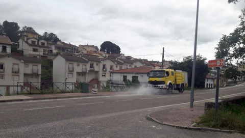 Desinfección en Mombeltrán.Las labores de limpieza se han llevado a cabo durante la jornada del sábado.