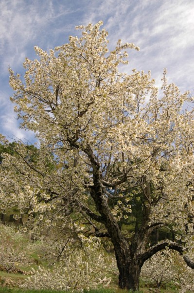 Es la flor de más de 50.000 cerezos que nacen en los árboles diseminados en una superficie de unas 500 hectáreas y que permiten contemplar un espectáculo intenso, pero breve, pues tan sólo pervive unas horas del año.