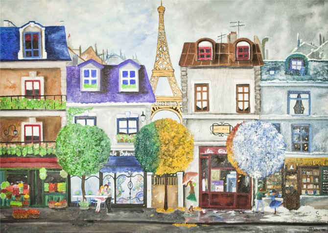En sus obras quiere “exaltar la imaginación y el mundo de los sueños”, y gracias al color pretende “cambiar la realidad con pequeñas pinceladas, rozando levemente el surrealismo, buscando que la belleza salga a la superficie a través de capas de pintura, mostrando el lado positivo de las cosas”.