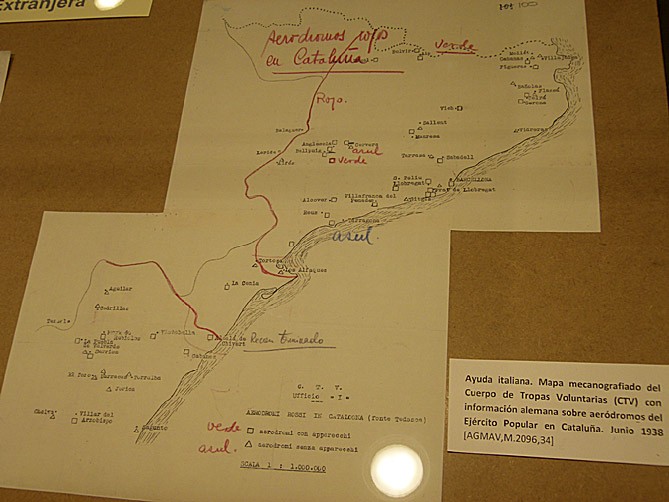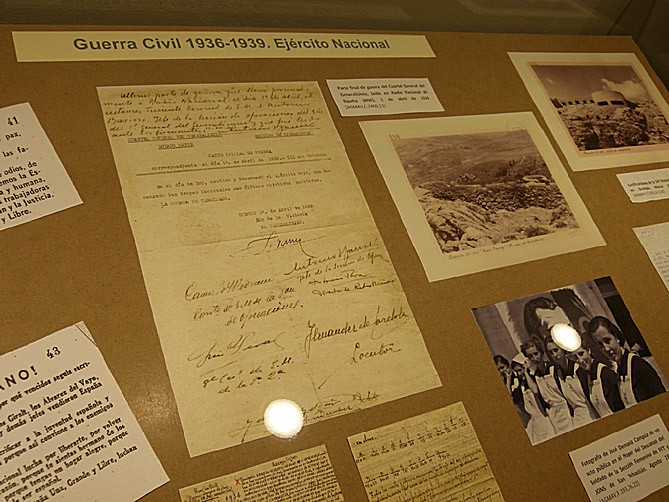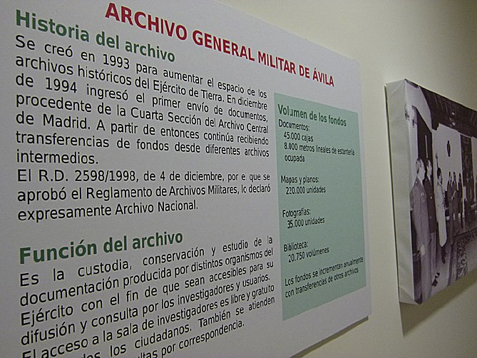 La pequeña muestra abierta ahora ofrece algunos ejemplos de las 45.000 cajas, miles de fotografías y planos que pertenecen al archivo. Destacan fotografías de las Brigadas Internacionales o un periódico en polaco de esta agrupación, escenas de la retaguardia, panfletos de la Guerra Civil, el parte final de contienda, minuciosos planos de la División Azul o mensajes cifrados, colombogramas, que se enviaban con las palomas mensajeras.