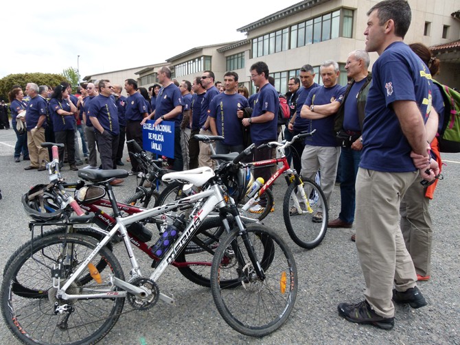 Durante seis jornadas, unos a pie y otros en bicicleta recorrerán los 130 kilómetros que dista O Cebreriro de Santiago de Compostela con tres furgonetas de apoyo. Partieron en autobús el viernes desde la Escuela Nacional de Policía, donde incluso les despidió el alcalde, Miguel Ángel García Nieto, cortando una cinta.
