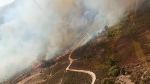 Columna de humo en el incendio de Navalacruz, el viernes. Debido a las graves consecuencias del incendio en explotaciones agrícolas y ganaderas, bienes y enseres personales, esta entidad ha decidido poner en marcha un plan de ayudas que incluye tres líneas de financiación "en condiciones especiales".