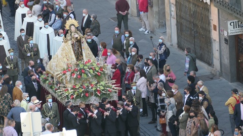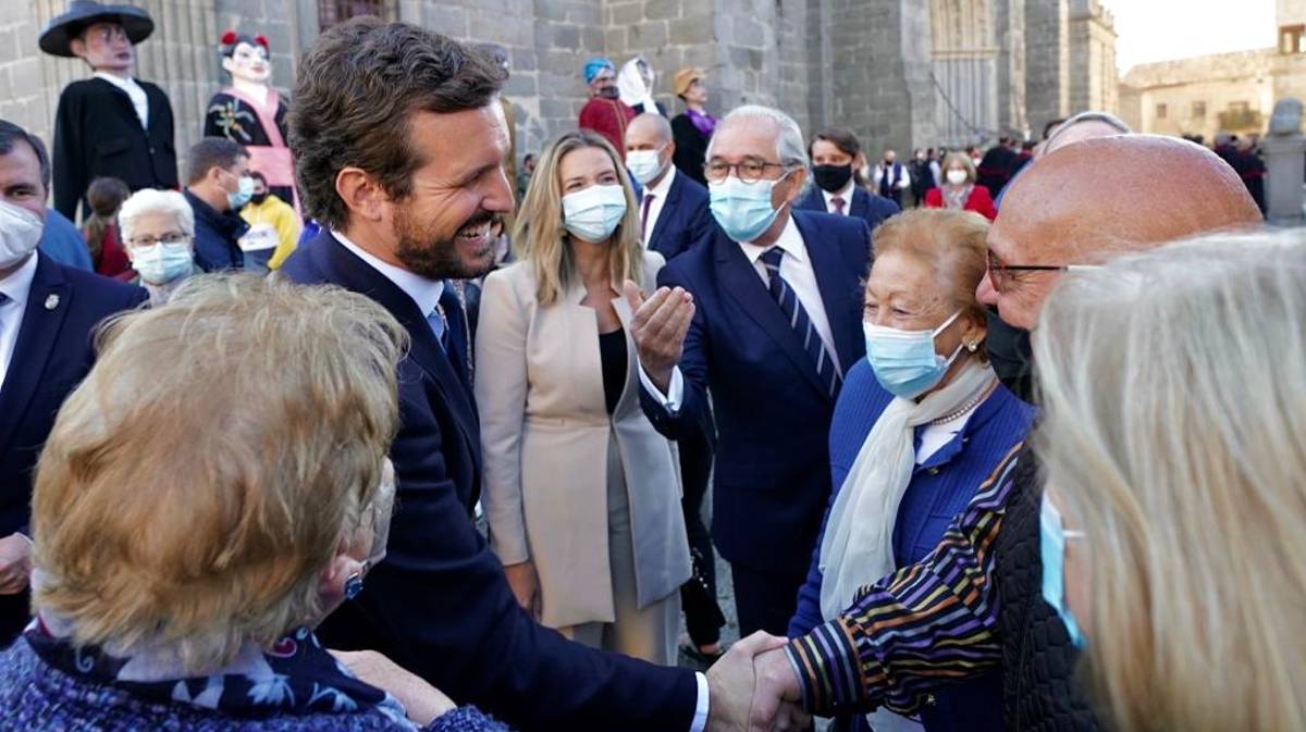 Tanto a la entrada como, sobre todo a la salida del templo, Casado ha sido saludado por algunos abulenses que le han reconocido tras una mascarilla negra en la que podía verse la imagen de Santa Teresa.