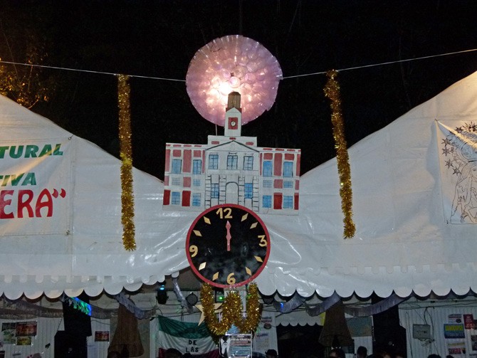 En la última noche de la docena de casetas, las de la Peña de los Mozos de Las Vacas y de la asociación Jarana Vaquera lo celebran como si una despedida del año se tratara. Decoración navideña para la Nochevieja, música navideña, las doce campanadas con sus doce… gominolas, incluso con indumentaria de Año Nuevo y, por supuesto, fuegos artificiales… eso sí, todo ello con temperatura veraniega en la noche del domingo 21de julio.